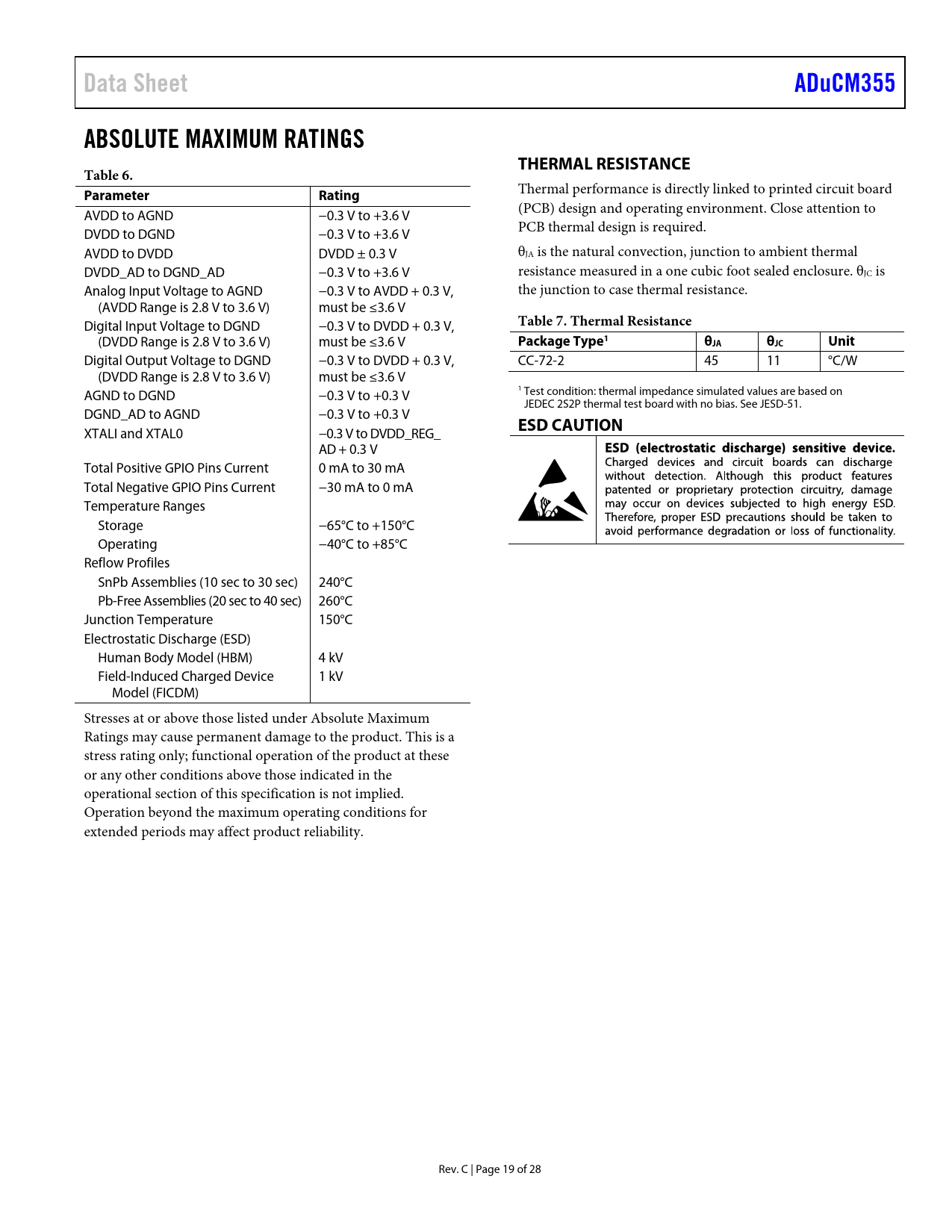 Data Sheet. ADuCM355. ABSOLUTE MAXIMUM RATINGS. THERMAL RESISTANCE